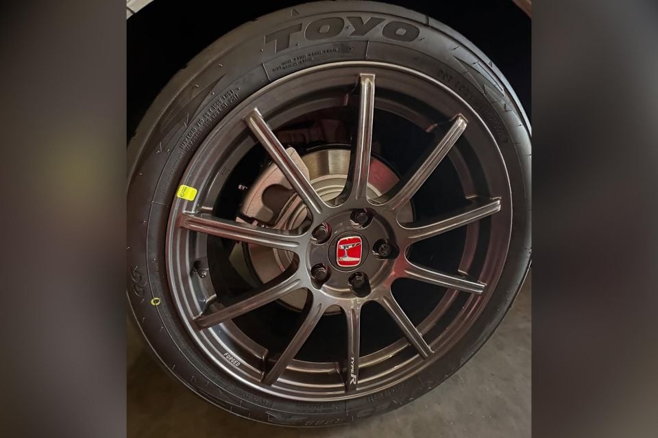 The car also rides on the Civic Type R’s 19-inch alloy wheels, which are paired with 275/35 Toyo Proxes R888R tyres. The brakes look to be unchanged, although the front calipers have been painted red.