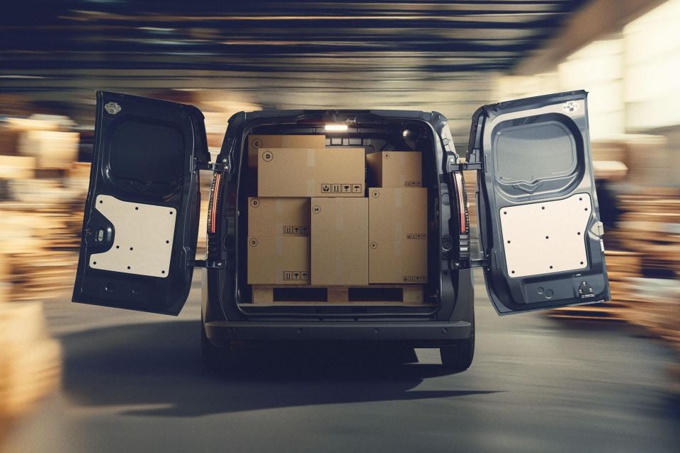 Both versions of the van are 1.92m wide, and 1.9m tall. There are barn darns at the back, sliding doors on the side, and the cargo bay can accommodate Euro pallets.